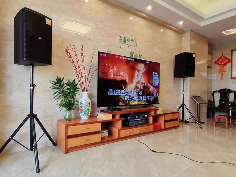 选JBL没选错,真正好音响无论是听歌还是唱歌,效果都绝绝子,麦克风唱歌没有啸叫,点歌机里面歌曲很丰富...